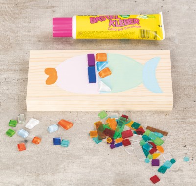 Ici, une planche de bois sert de surface de création. La forme du poisson est dessinée, peinte ou construite avec différents matériaux. L'accent est entièrement mis sur la composition, l'effet de couleur et la finition de la surface. Des effets plastiques sont créés à l'aide d'éléments de collage, de pâte structurée, de pochoirs ou d'un mélange de matériaux - idéal pour les groupes qui souhaitent mettre l'accent sur le processus créatif ou qui disposent de moins de temps pour travailler avec des outils.