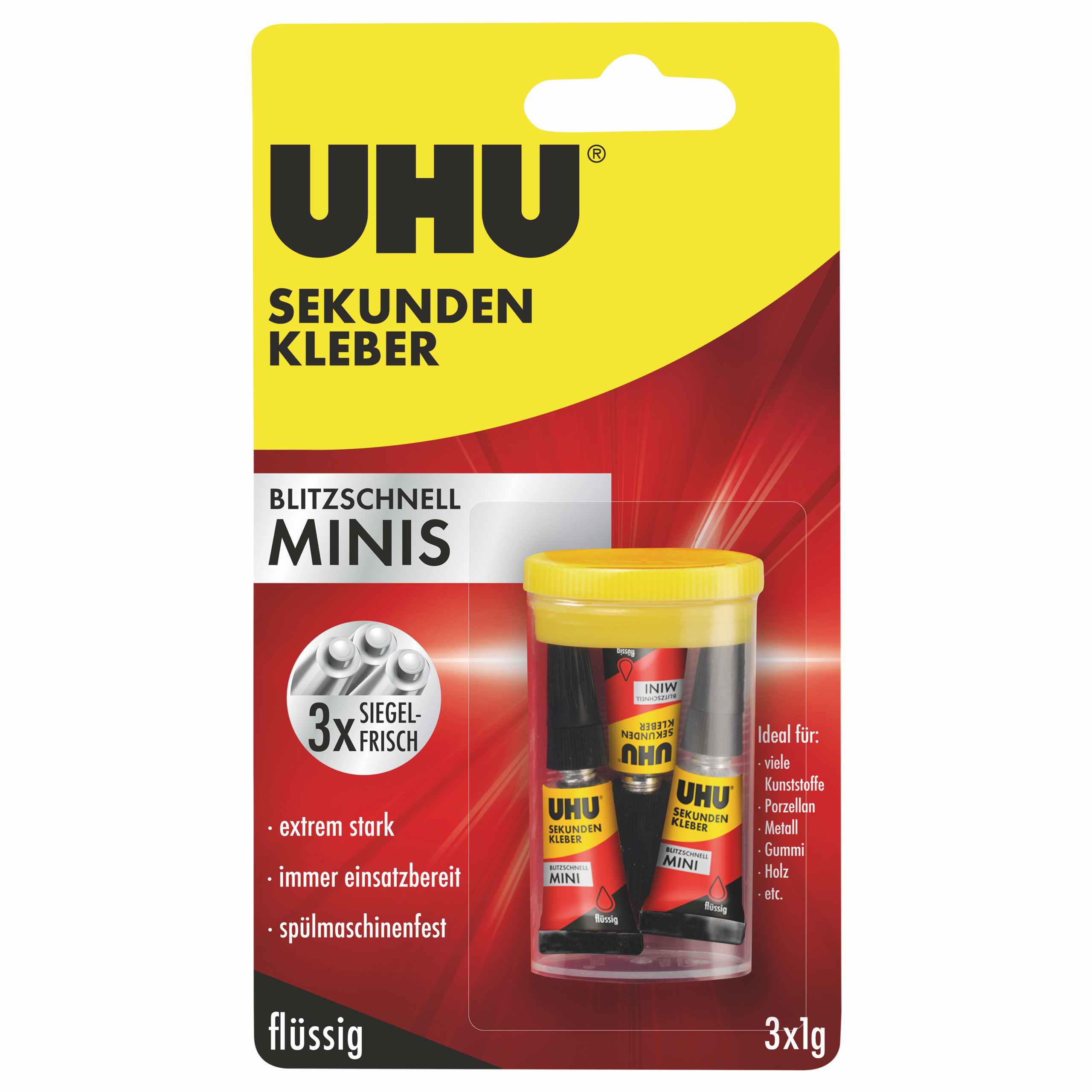 Colle instantanée extrêmement forte et résistante à l'eau - portionnée en 3 tubes de 1 g, dans une boîte de rangement pratique. Qualité op...