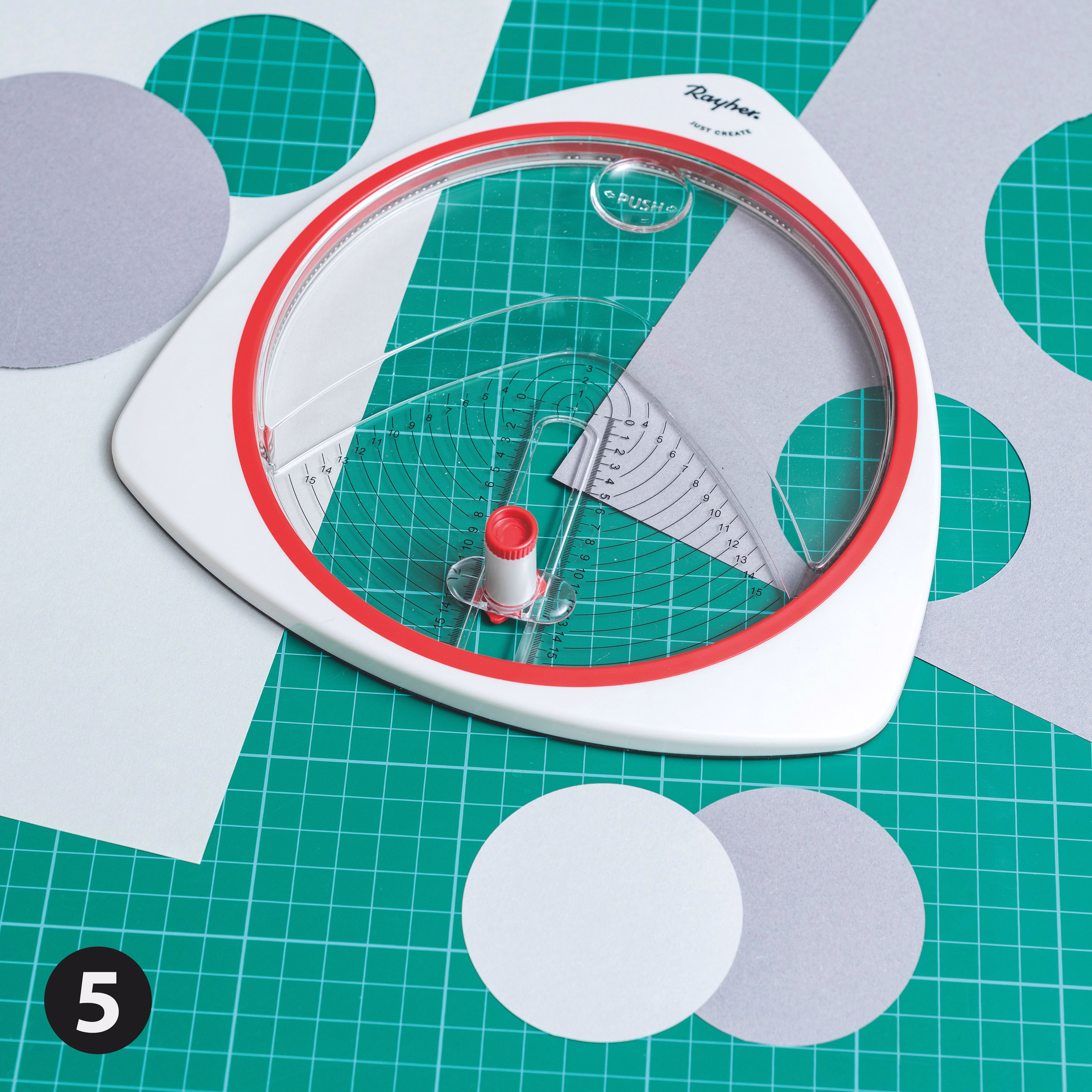Le découpeur avec revêtement antidérapant est parfait pour découper avec précision des cercles de ø 24 à 153 mm et pour arrondir les angles. Fenêtre transparente avec graduation en cm. Convient pour le papier à partir de 130 g/qm, le caoutchouc mousse jusqu'à 2 mm, le carton gris jusqu'à 600 g/qm et le film rigide jusqu'à 0,4 mm.