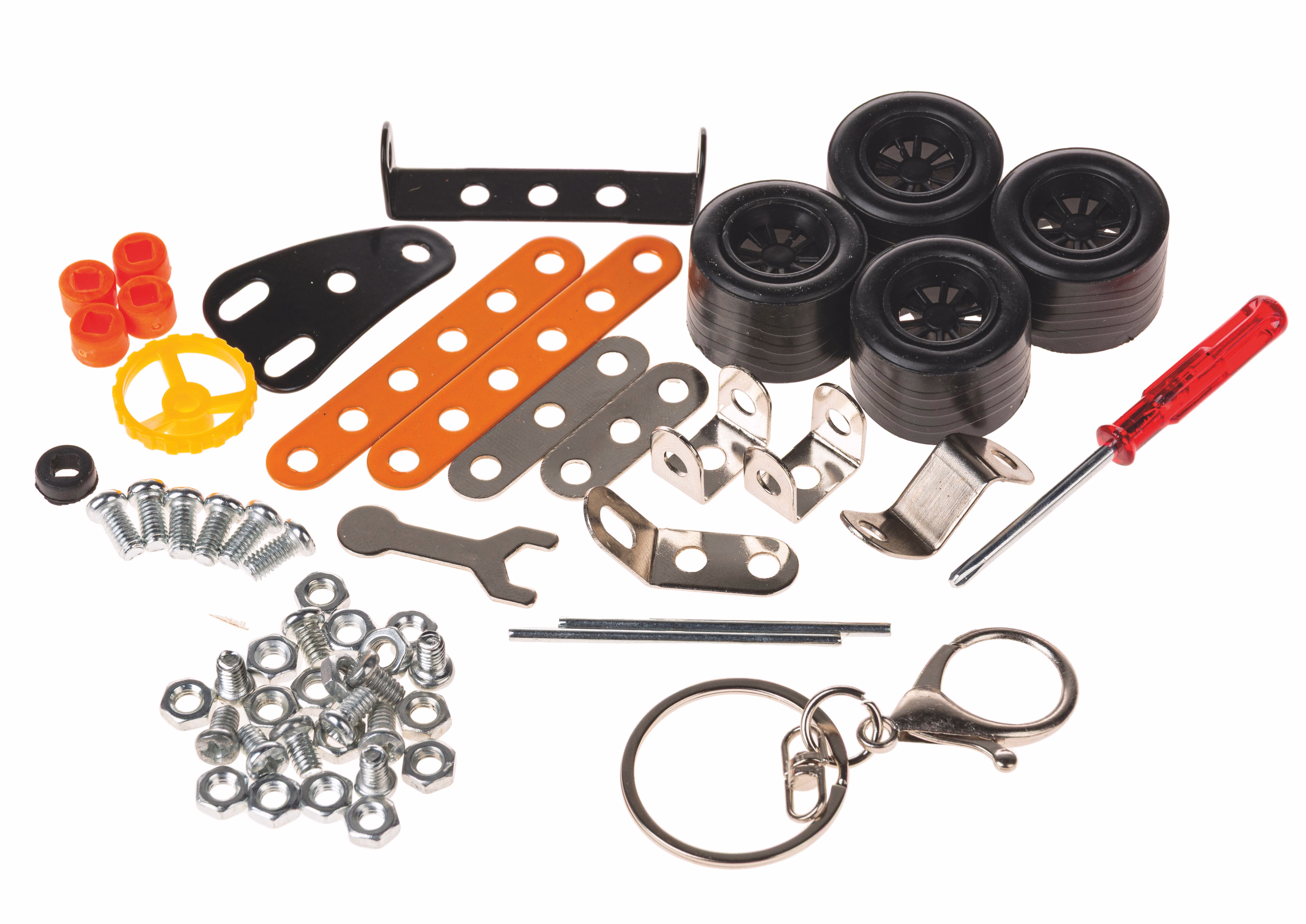 Découvrir le monde de la technique en s'amusant : Le mini-kit de construction métallique entraîne la motricité, la créativité et la réflexion spatiale. Toutes les pièces sont compatibles entre elles et extensibles. Les outils de montage et les instructions illustrées sont inclus dans la livraison. Dimensions : env. 70 x 45 x 55 mm, 53 pièces