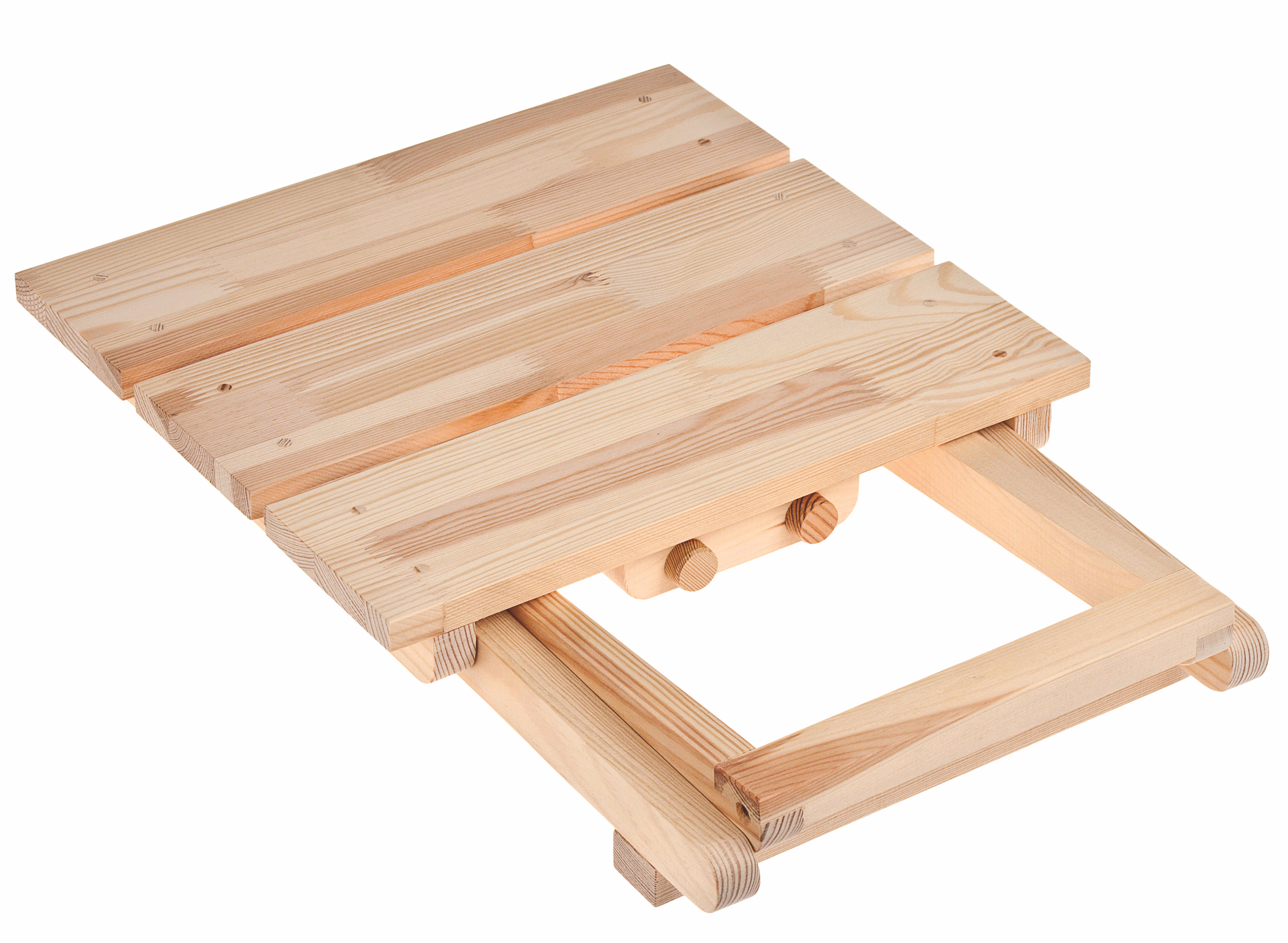 Modèle en bois pour un tabouret pliant stable et entièrement fonctionnel, pour lequel les assemblages en bois les plus divers sont utilisés. Un dispositif de blocage sur le tabouret déplié évite les blessures en cas de "glissement ou de changement de place". Travaux nécessaires : Percer, scier, poncer/limer et tracer.