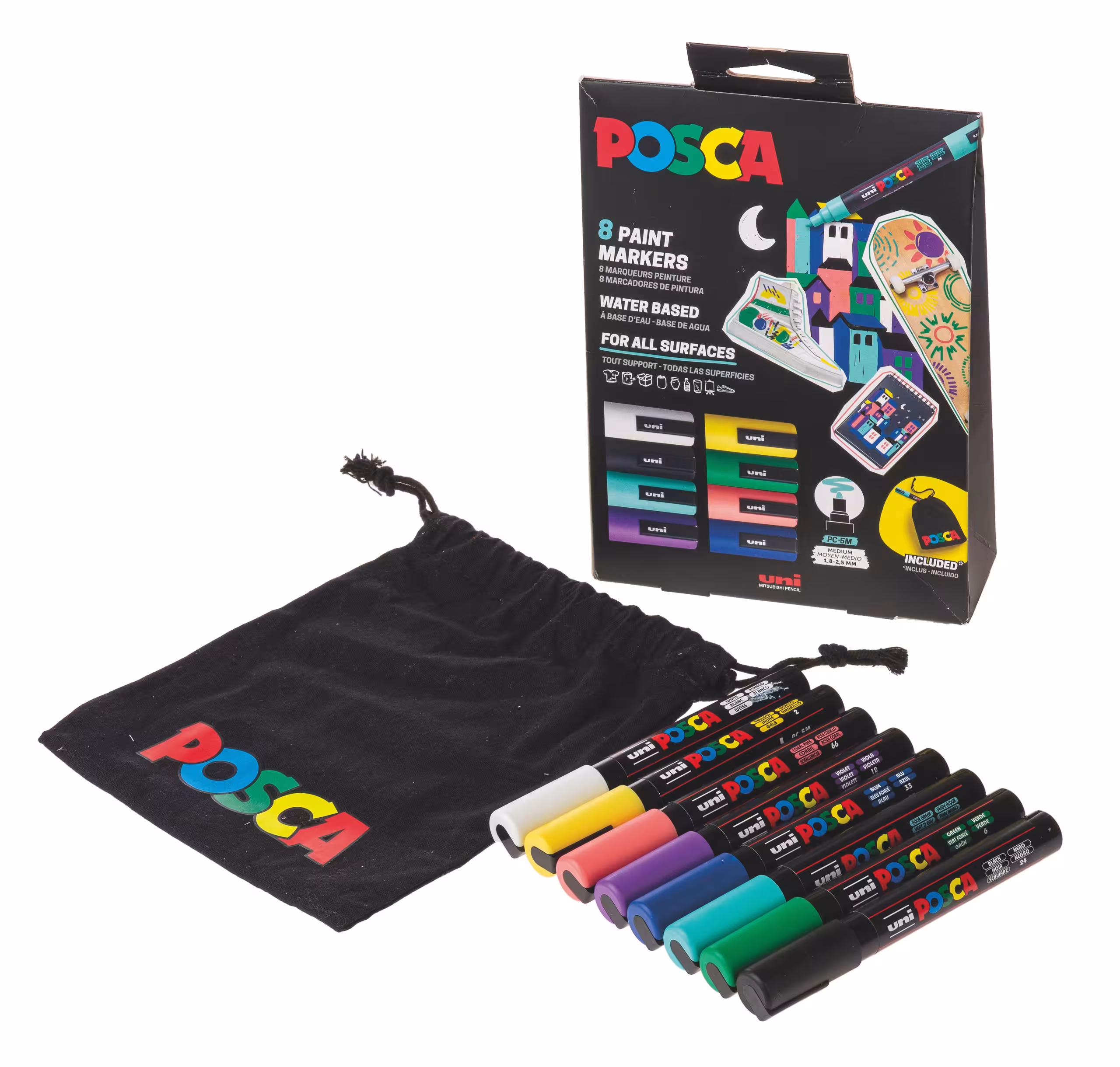 POSCA PC-5M Set promotionnel de 8 pièces, sac en tissu inclus