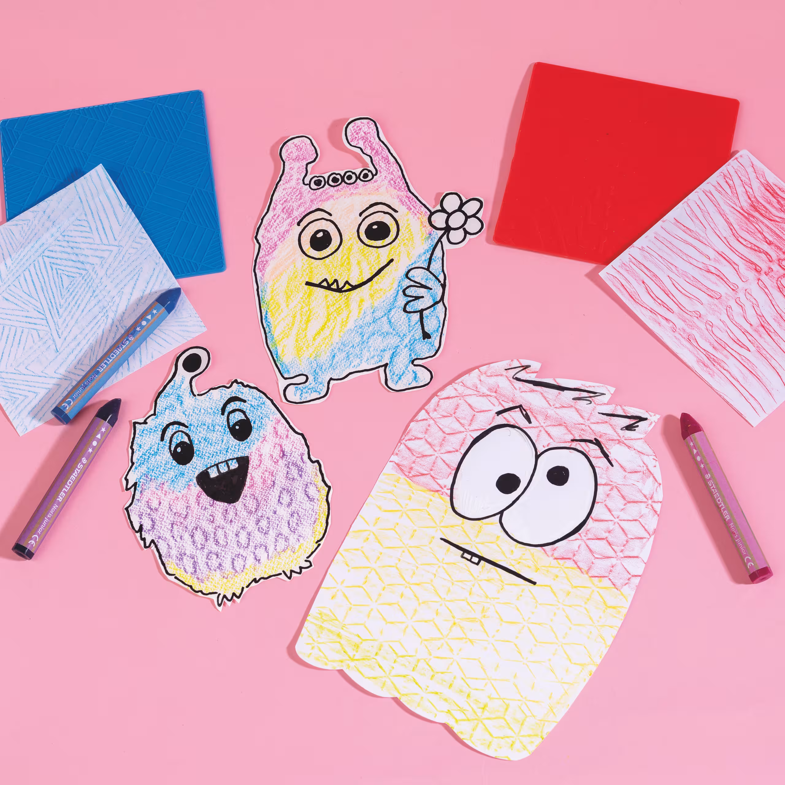 8 motifs différents pour gaufrer la pâte à modeler ou tamponner avec de la peinture, différentes structures, plastique, couleurs assorties, motif des deux côtés, ...