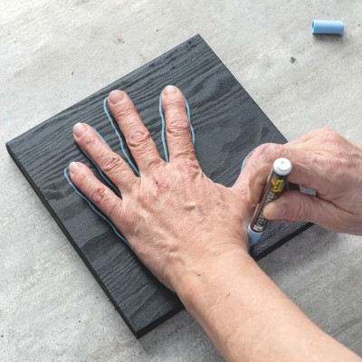 Poser la main, tracer la main à la craie sur la planche.