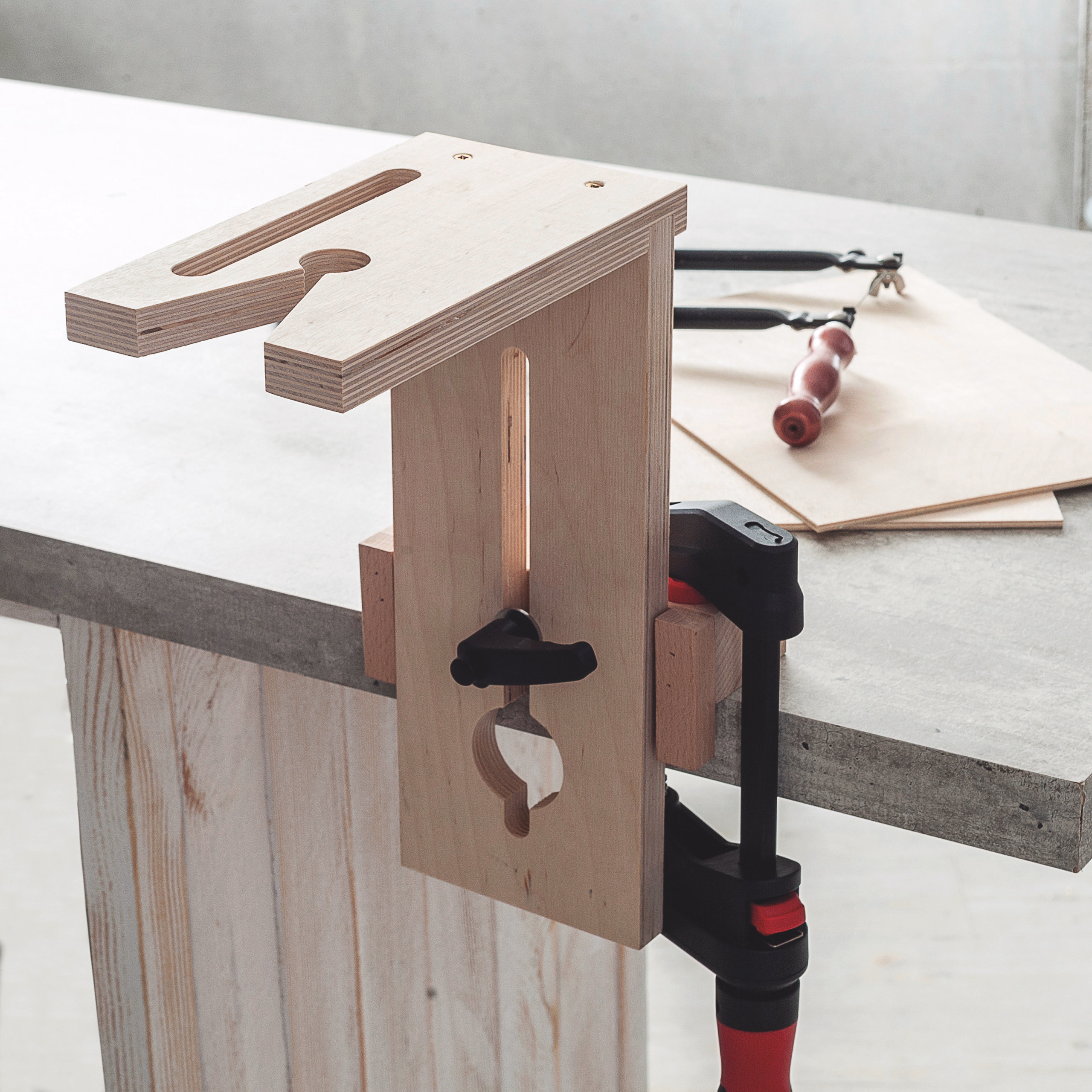 Multistrato, altezza regolabile, munito di foro longitudinale per custodire il seghetto. Senza dispositivo di serraggio e morsetto, da ordinare separatamente...