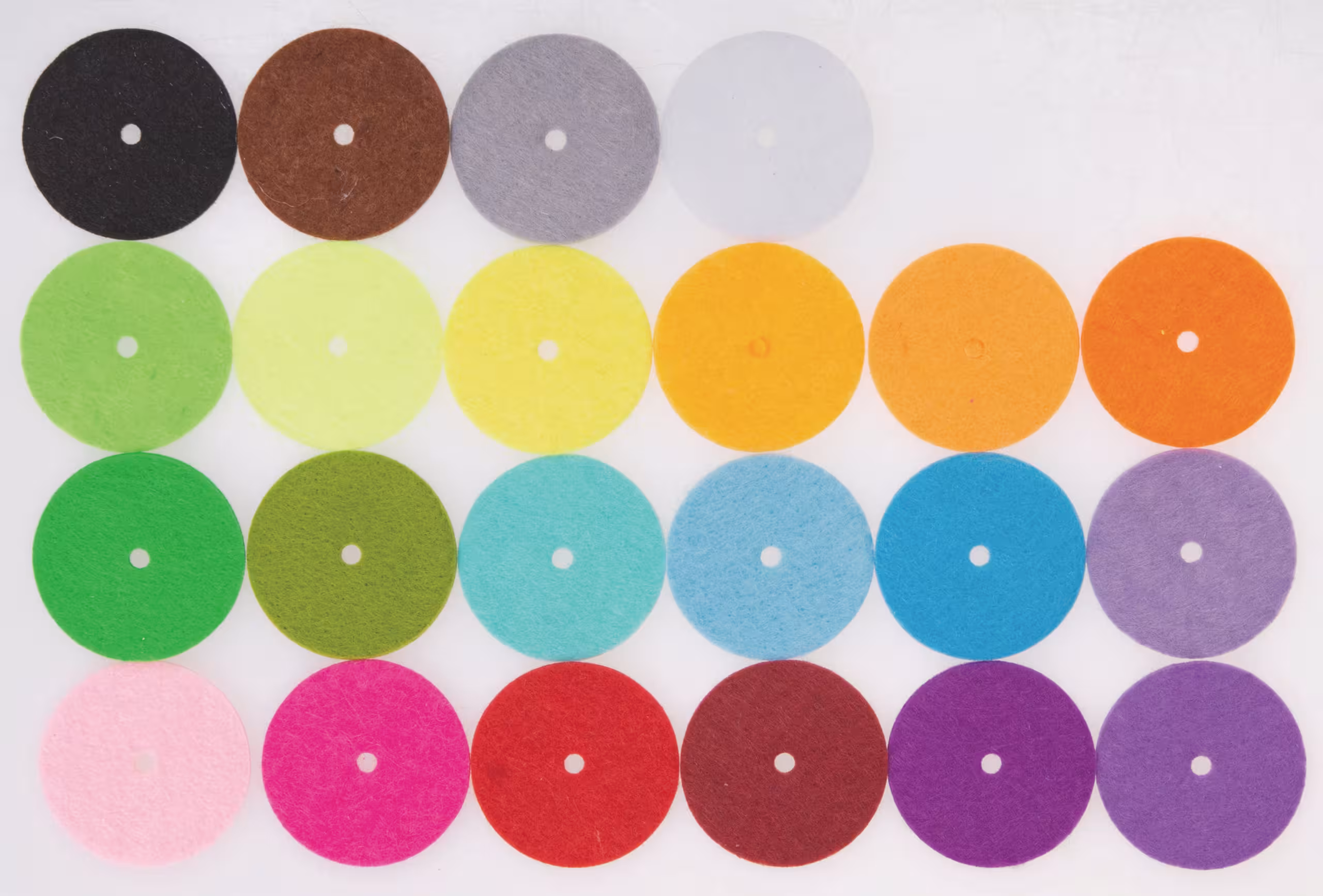 24-farbig sortiert, Maße: ca. ø 40 x 2,5 mm, Bohrung: ca. 3 mm, 288er-Set