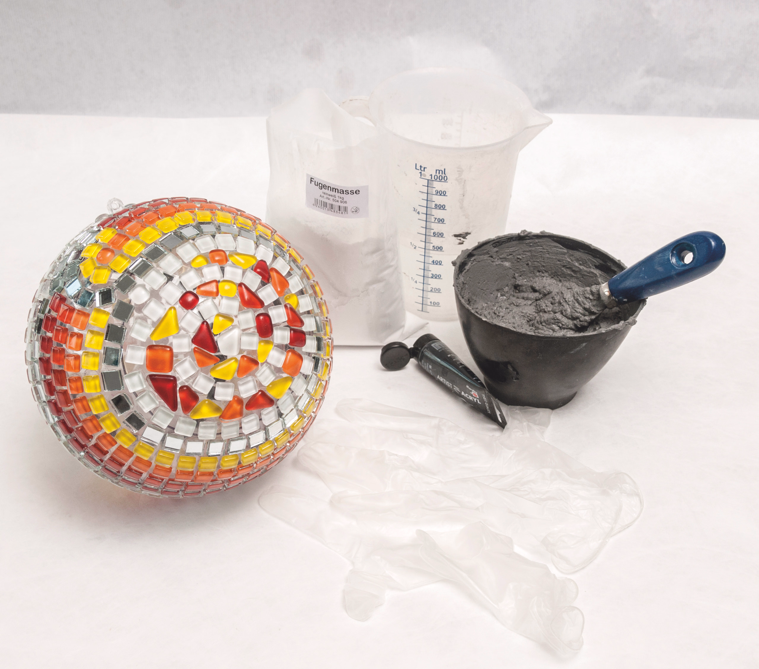tonalità giallo/rosso, ca. 10 x 10 mm, spessore ca. 4 mm, 200 g = ca. 210 pezzi, sufficiente per una superficie di ca. 150 x 150 mm