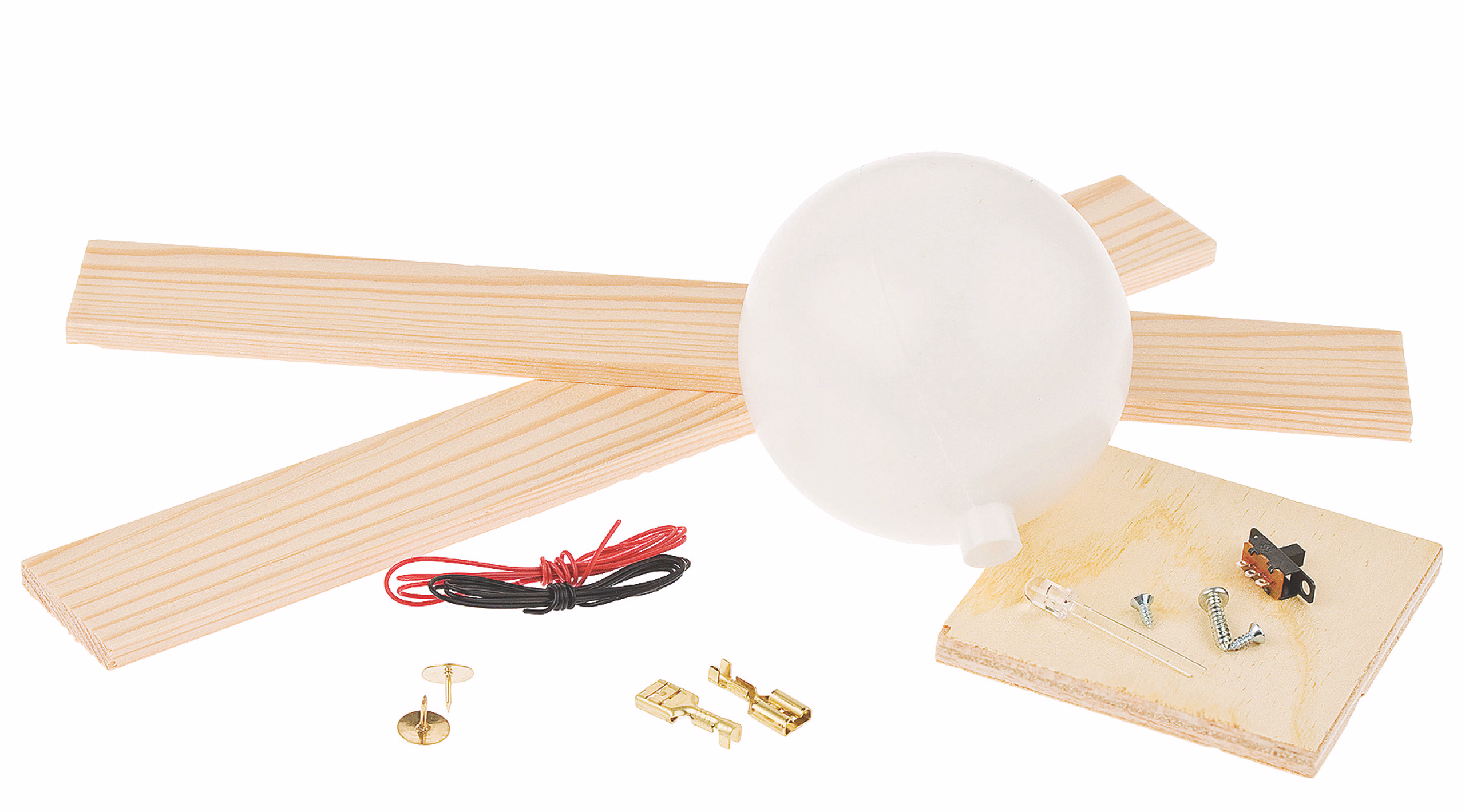 Un LED Rainbow crea nella sfera bianca opaca (ca. ø 70 mm) degli effetti variopinti di luce. Si tratta di una costruzione semplice senza dover eseguire delle saldature, i fori necessari vengono eseguiti mediante trivella oppure lesina, munita di interruttore e custodia batteria. Senza batteria da 4,5 V.