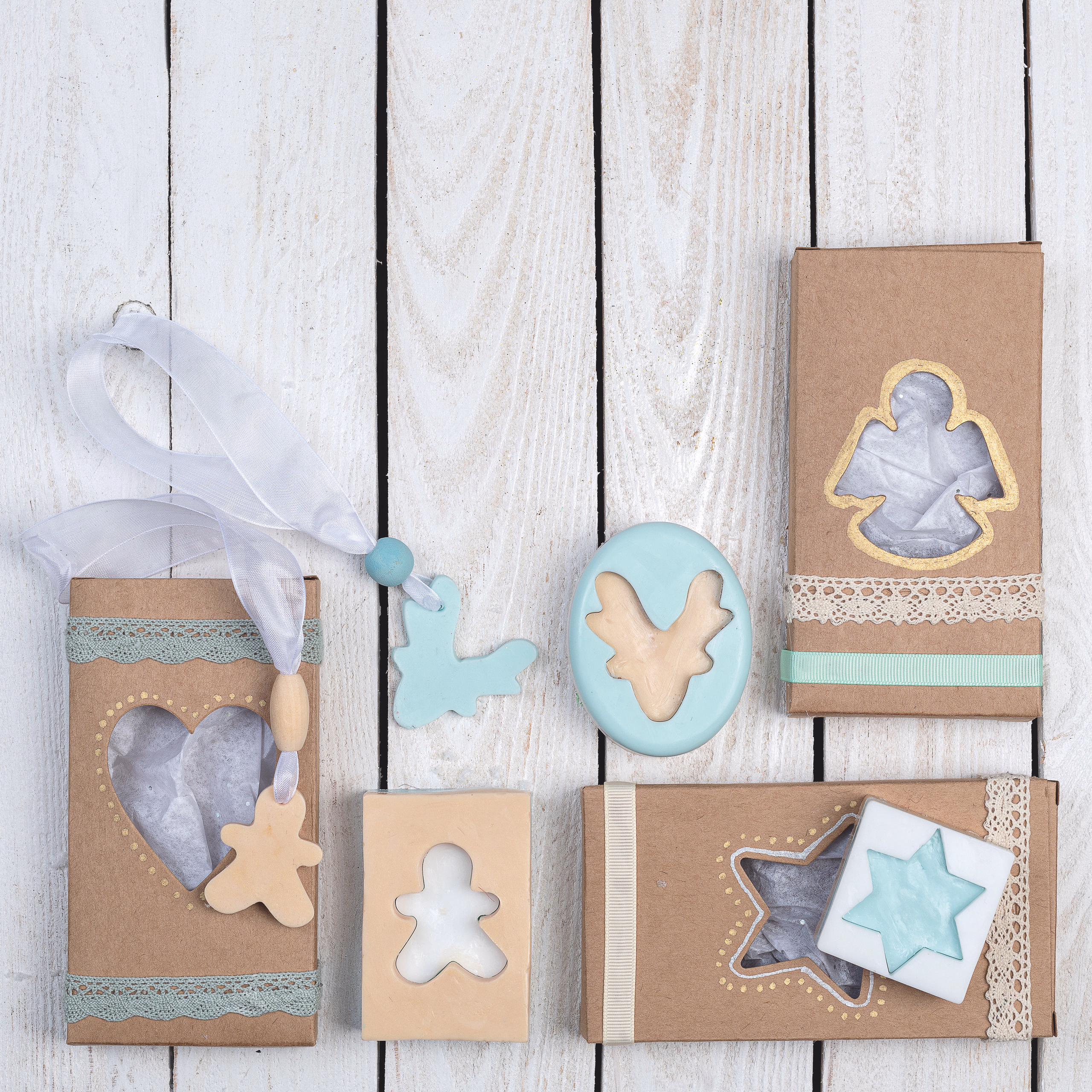 1 Form ca. 215 x 150 mm, 6 Motive, Größe ca. 50 x 50 mm, ca. 25 mm hoch, Materialbedarf: ca. 300 g Gießseife, blau, 1 Stück