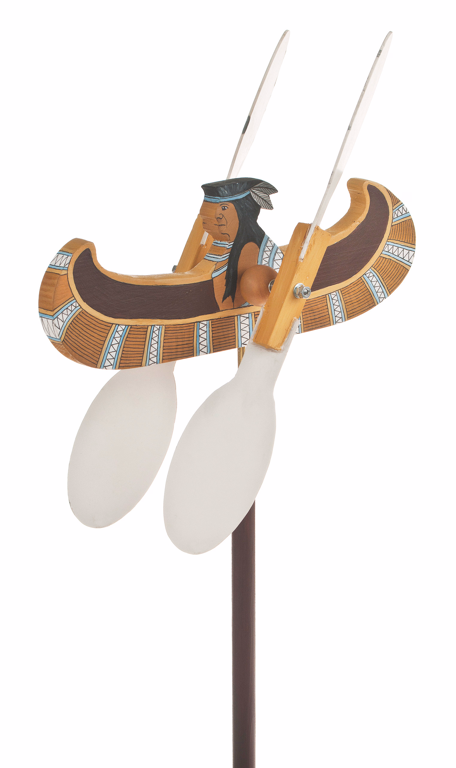 Chi non ha ancora visto un'anatra oppure una libellula nel sole che sorge vicino ad un laghetto muovere con vigore le ali nel vento. Questo modello viene posto all'esterno appoggiandolo in modo girevole su un tondello (compreso nella fornitura) della lunghezza di 350 mm. Le ali girano già con un leggero vento grazie al supporto a basso attirto. Viene realizzato con un mix di materiale composto di legno massiccio e materiale sintetico. Si tratta di un semplice lavoro di taglio e foratura. Le sagome in scala 1:1 facilitano la realizzazione. Nella guida è pure compresa una proposta per la decorazione a colori.