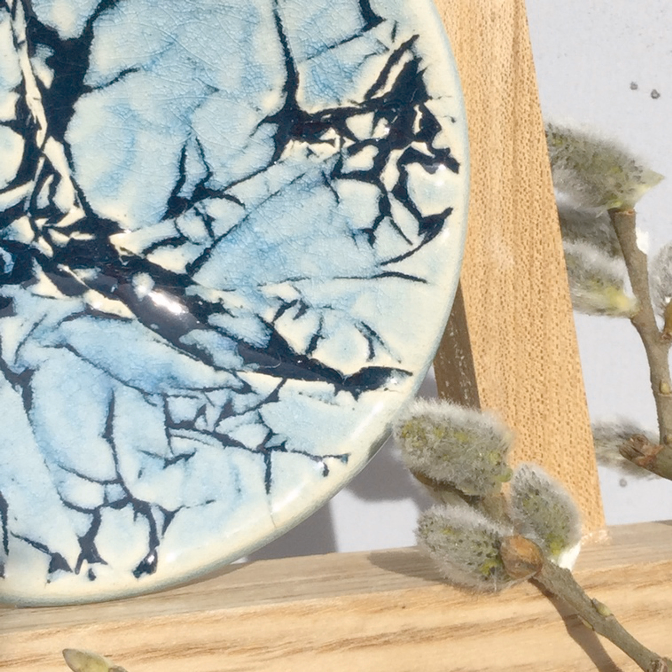 Tip: glazuur dun (1 - 2 keer) opbrengen. Brandt bij ca. 1050°C. Na het afkoelen de scheuren met inkt of sterke thee inkleuren. Voor groffe scheuren direct inkleuren, voor fijne scheuren Kleur: craquelé turkoois glanzend, 200 ml, per stuk