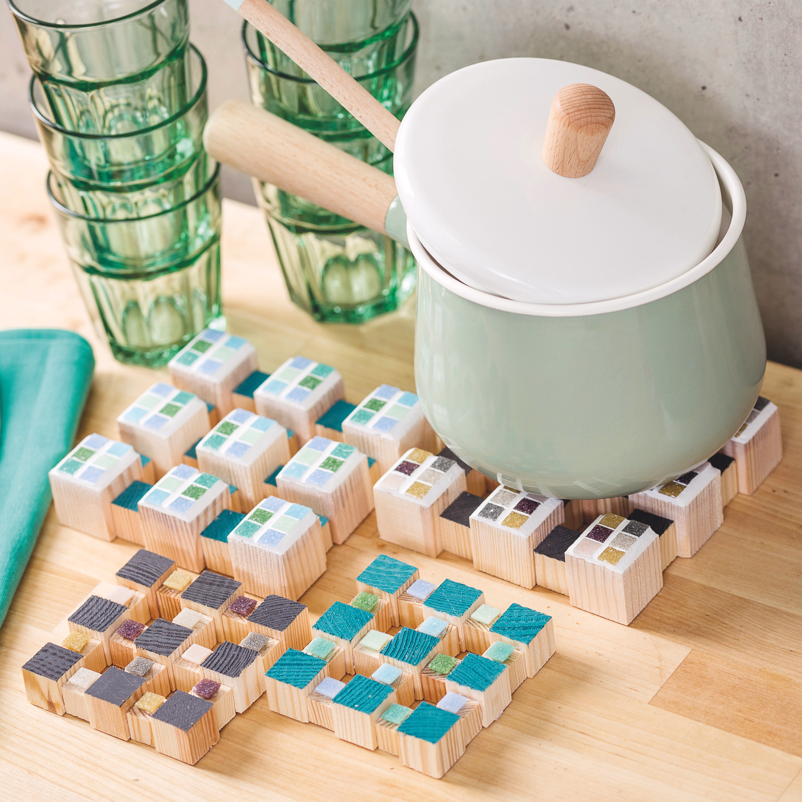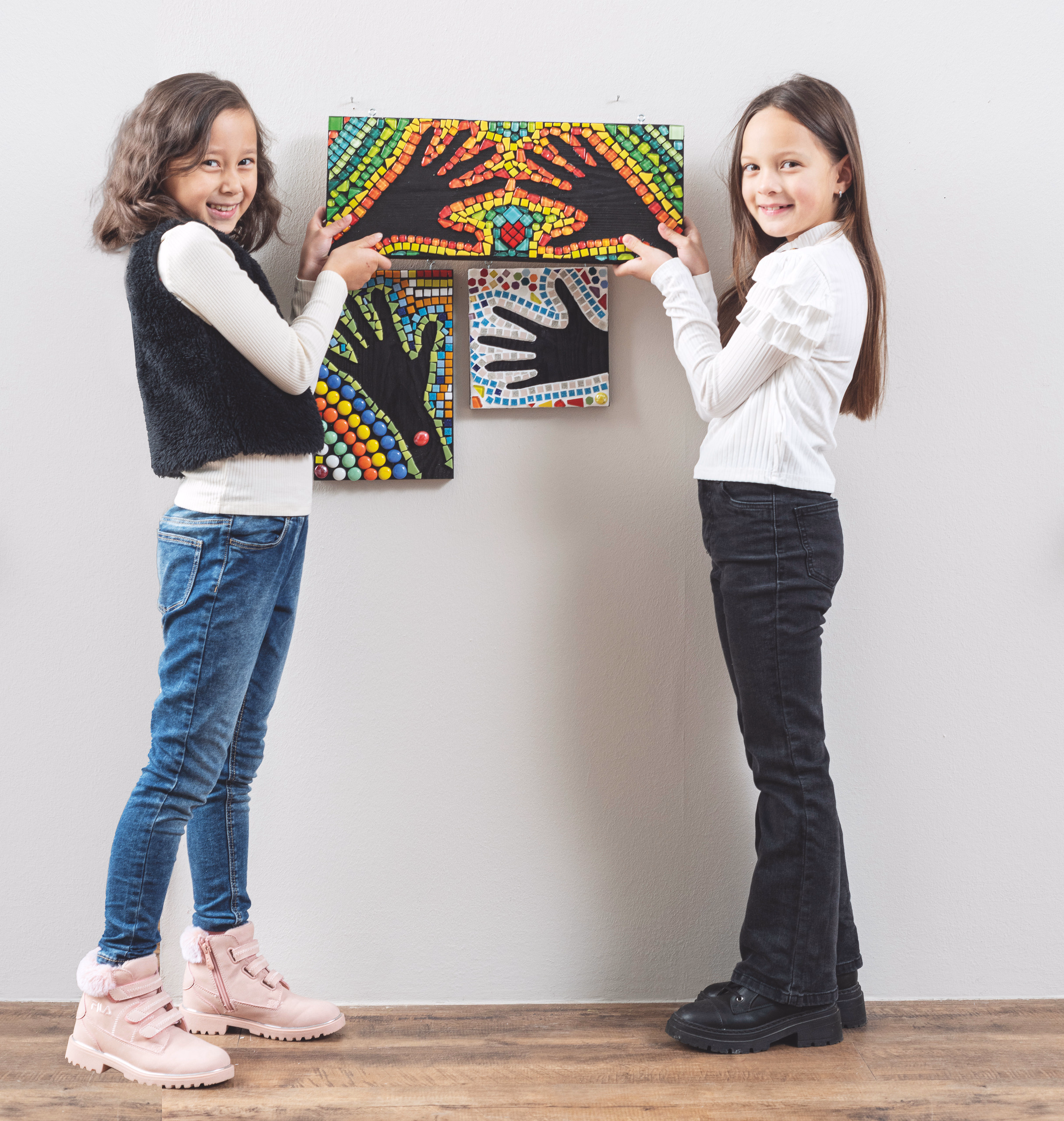 Grootte: ca. 10 x 10 mm, ca. 4 mm dik, kleurrijk, 1000 g = ca. 1450 stuks, voldoende voor een oppervlak van ca. 550 x 550 mm