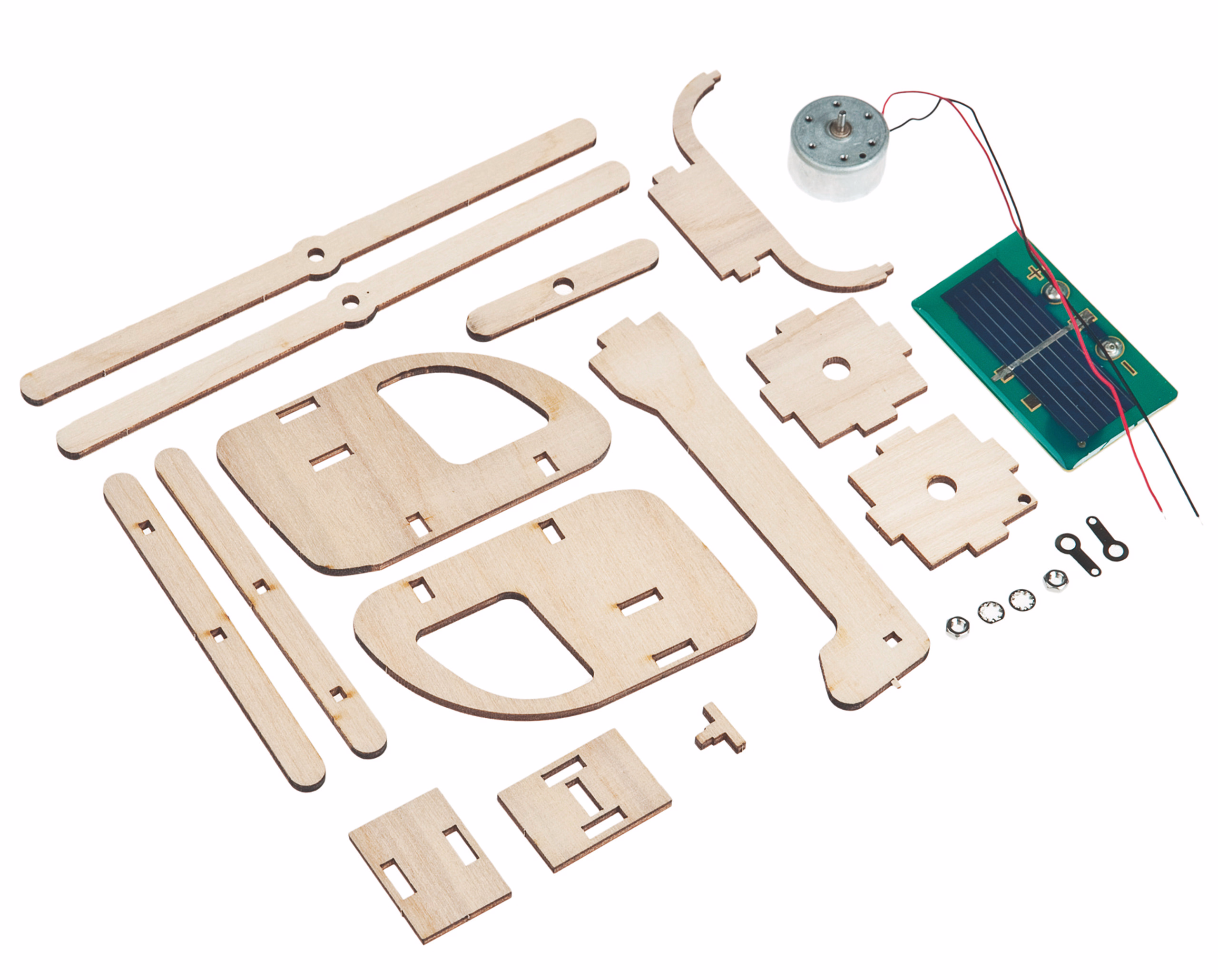 Rotor draait al bij een beetje zon, incl. bouwtekening, zonnecel 0,5 V - 250 mA en solarmotor RF 300. Rotor diameter: ca. 155 mm, romp lengte: ca. 200 mm, per stuk