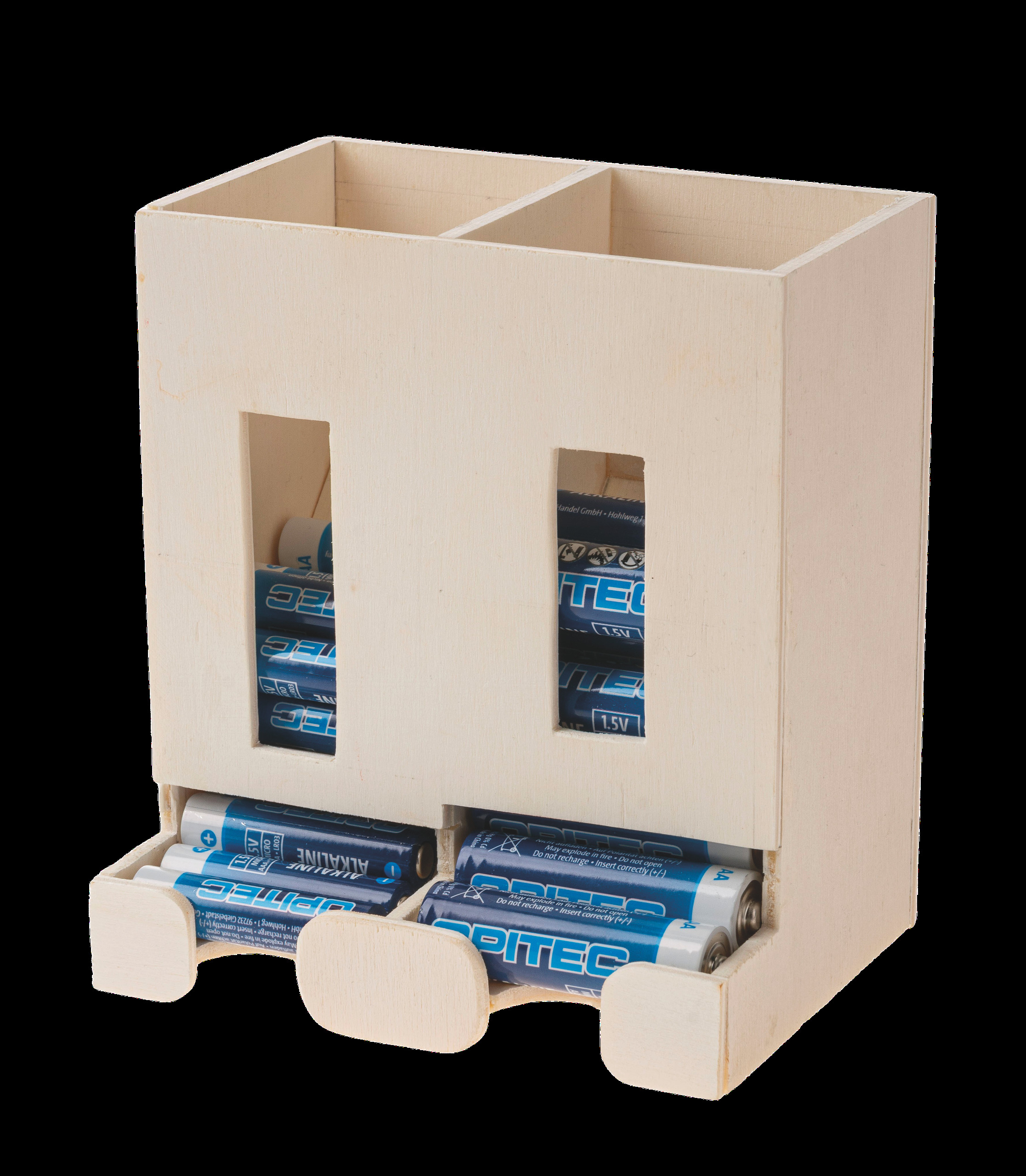 Met deze functionele batterijdispenser wordt organiseren een fluitje van een cent. Dit eenvoudige, doordachte fretwerk is speciaal ontworpen voor de afmetingen van de batterijen (AA/AAA) en maakt indruk met zijn praktische, geïntegreerde dispenserfunctie. Geleverd zonder batterijen.