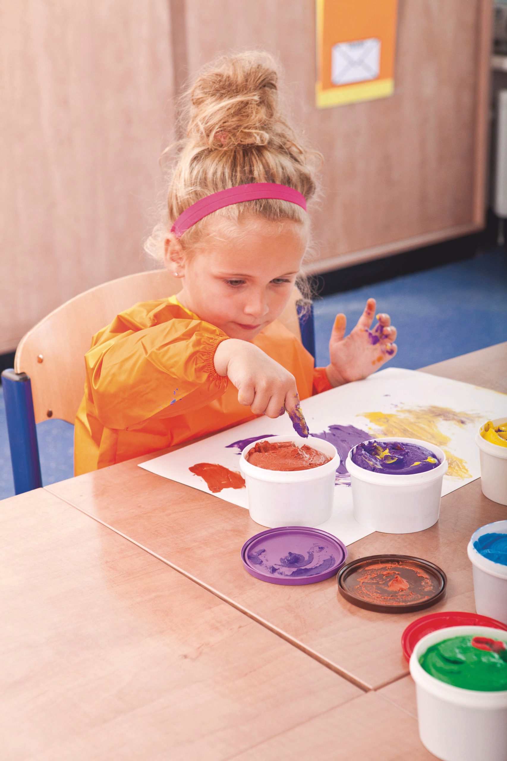 Verdunbare vingerverf op waterbasis, met hoge dekkracht en bijzonder veilig door het gebruik van bitterstoffen. Absoluut probleemloos te gebruiken door de allerkleinsten. De verf is onderling mengbaar, droogt mat op en kan gemakkelijk uit de meeste textielsoorten worden gewassen vanaf 30°C. Geschikt voor kinderen vanaf 3 jaar.