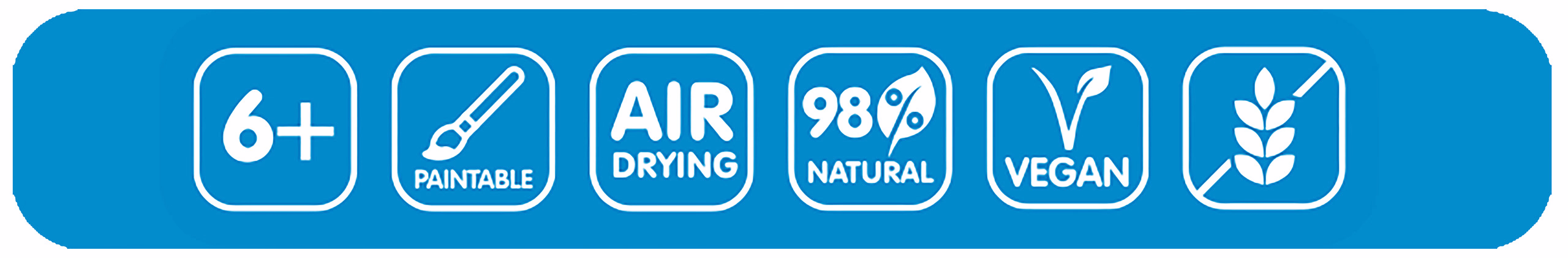 Creall Do & Dry is een elastische, zachte modelleermassa. Kleeft niet aan de handen, gemakkelijk te hechten. In combinatie met andere materialen moet u erop letten dat de ondergrond vetvrij gemaakt is. Creall do & dry droogt aan de lucht. Na het drogen is de massa zeer stabiel, maar toch zijn aanpassingen nog mogelijk door het nat te maken en daarna goed aandrukken. Door het object te schuren kunt u ook oneffenheden wegwerken. De modelleermassa is na het drogen beschilderbaar