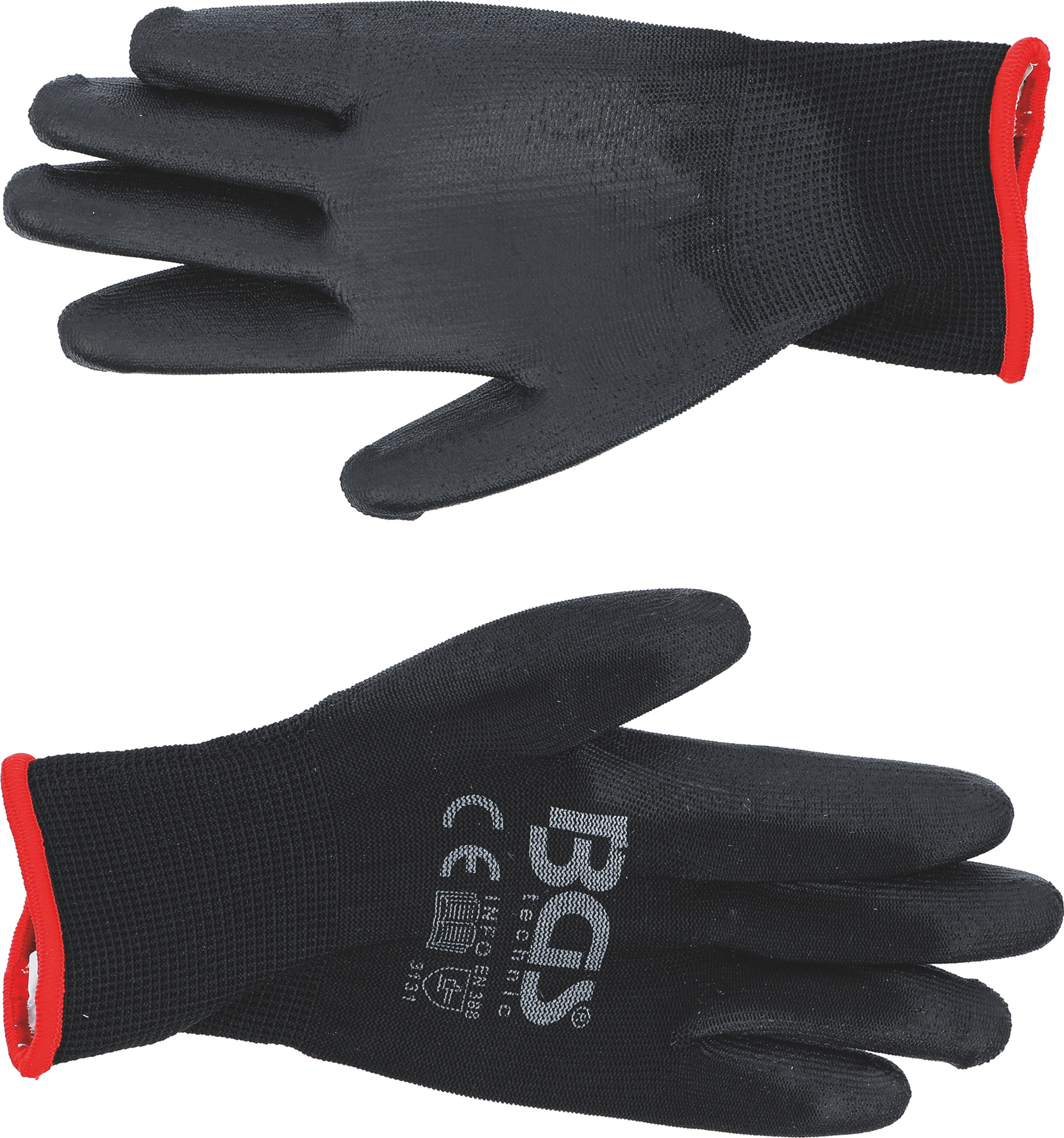 Met zwarte gedeeltelijke PU coating, zeer goede pasvorm en grip, goede tast, gebreide pols, maat 7/S, per paar
