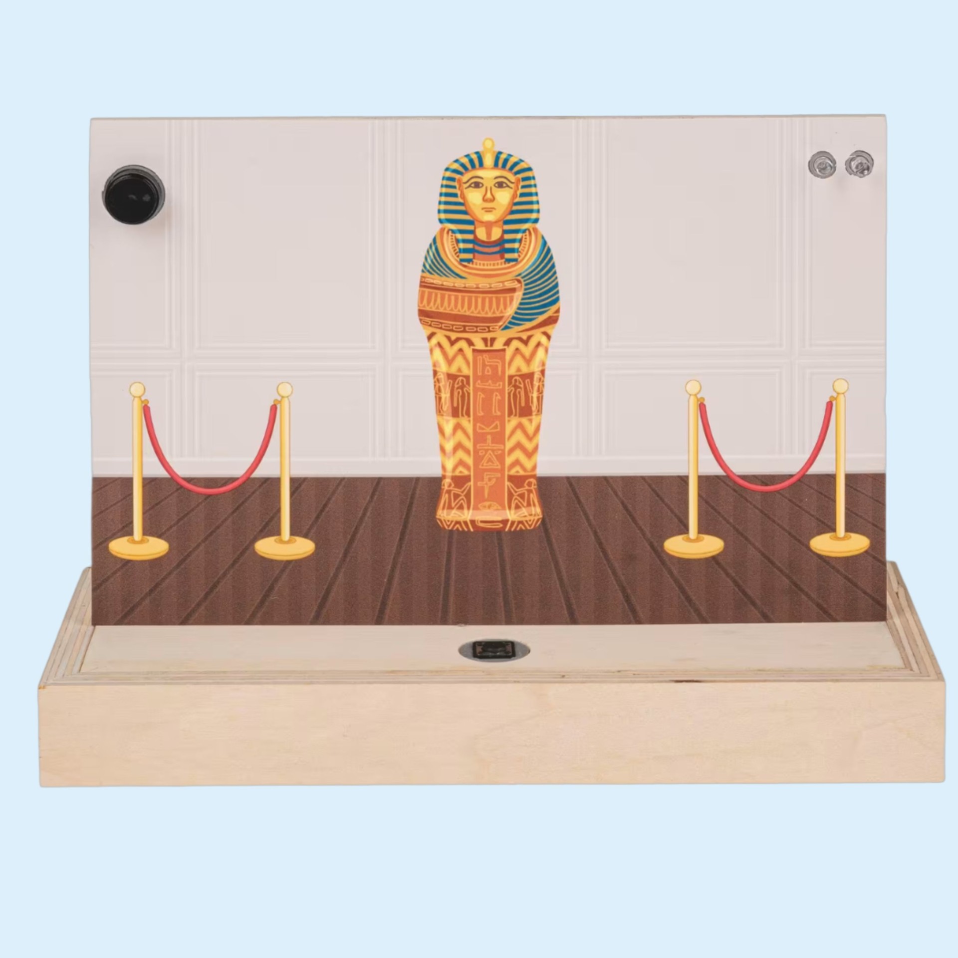 In dit project bouwen leerlingen een functioneel model van een museumalarmsysteem. Er kan bijvoorbeeld een mobiele telefoon of een ander voorwerp op een sokkel worden geplaatst. Als dit wordt verwijderd, herkent een knop de verandering en wordt er automatisch een alarmsignaal geactiveerd.