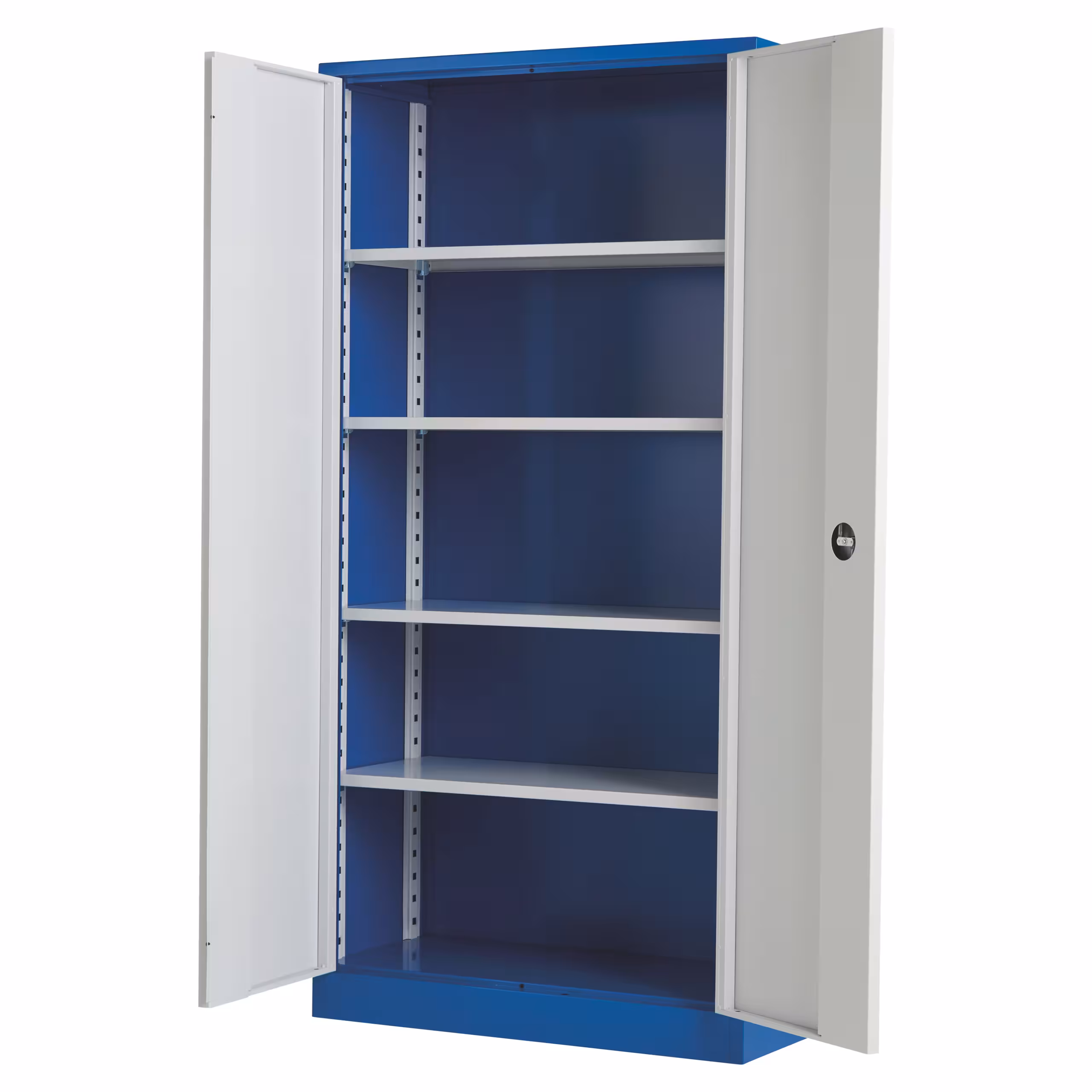 Deze universele opbergkast is voorzien van 4 in hoogte verstelbare legborden en heeft een afsluitbare deur.