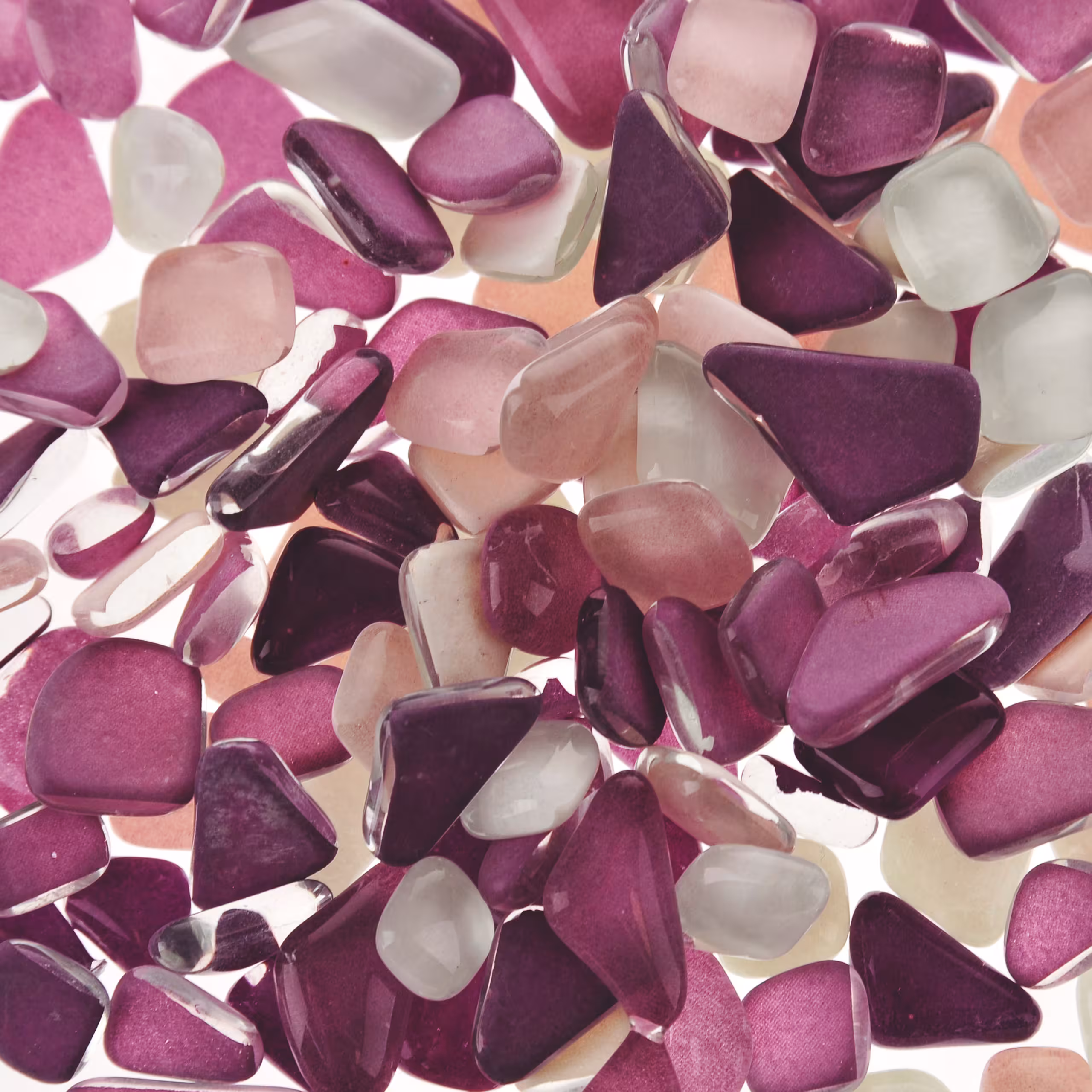 In verschillende lilatinten, ca. 10 - 20 mm, ca. 5 mm dik, vrijblijvend gesorteerd, 200 g = ca. 110 stuks, voldoende voor een oppervlak van ca. 150 x 150 mm