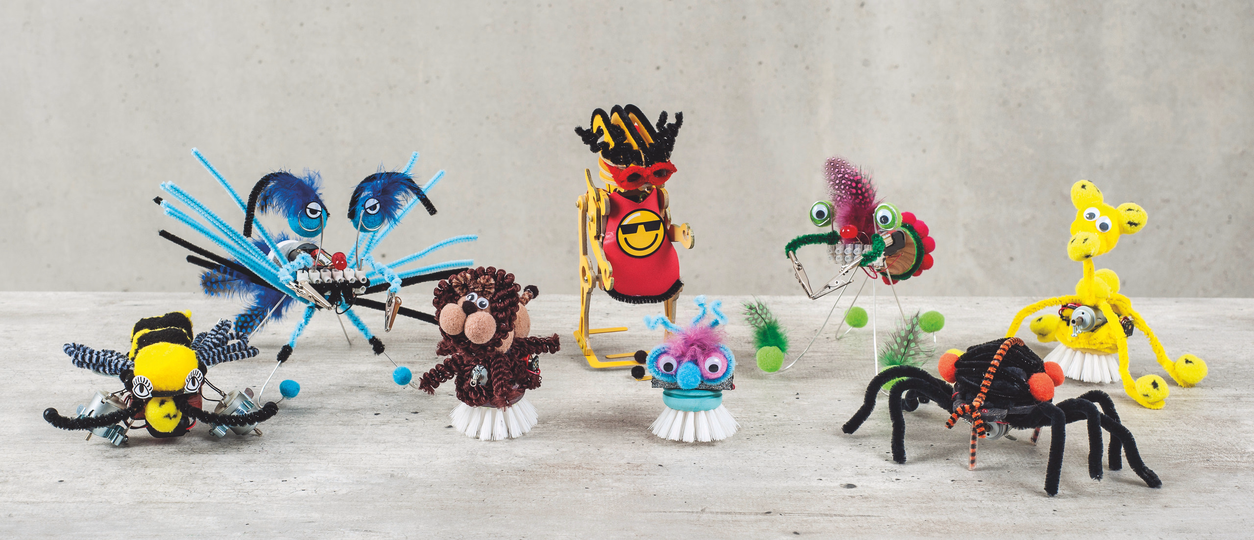 Zodra de stroomkring middels een schuifschakelaar wordt gesloten, loopt de borstel ongecontroleerd heen en weer op een vlakke ondergrond. Eenvoudige stroomkring die ook zonder solderen te maken is.