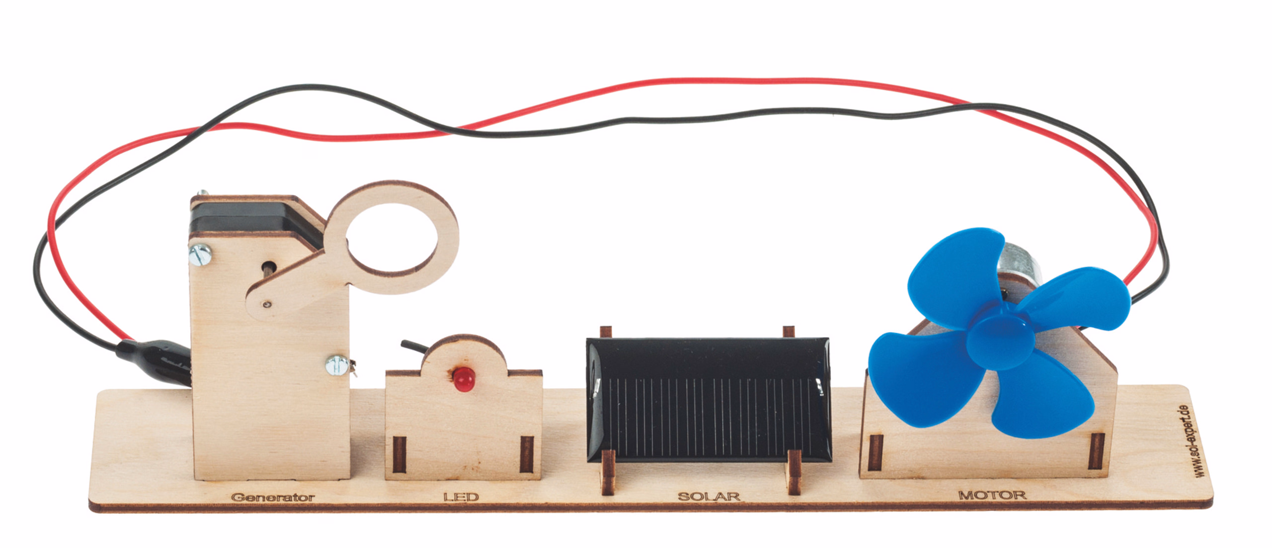 Dit energiestation geeft spelenderwijs weer hoe eenvoudig alternatieve energie gewonnen kan worden. Solar-, wind- of waterkracht, met deze set kan uit verschillende energiebronnen stroom opgewekt worden en daarmee kunnen een LED, motor of windmolen aangedreven worden. De kinderen leren in groepjes de relatie tussen de energieproductie en het -verbruik kennen. Zij oefenen praktijk gericht een onderwerp. Voor- en nadelen kan zo goed worden aangetoond. Bouw in het klaslokaal mogelijk.