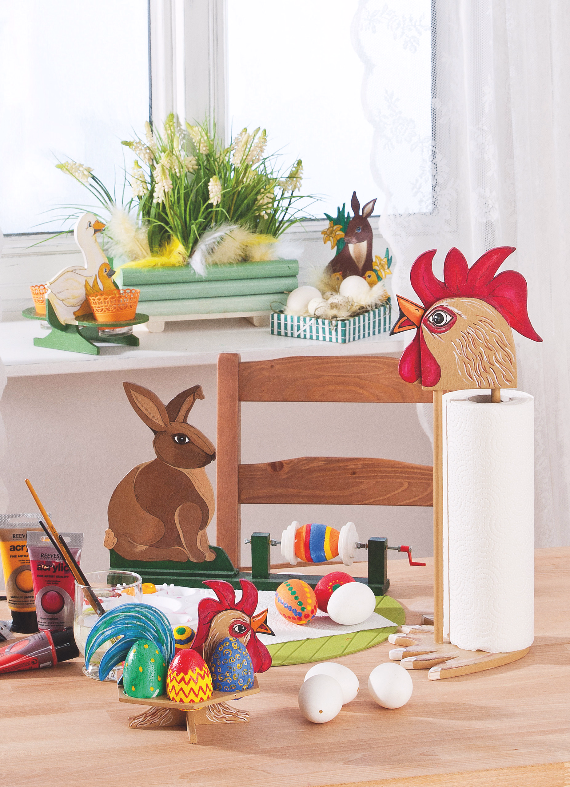 De eierstandaard vrolijkt elke ontbijttafel op. Heel geschikt als cadeautje. Ideaal bouwpakket voor de eerste figuurwerkzaamheden. Met de handleiding en het papiersjabloon (schaal 1:1) worden de contouren op het triplex overgebracht en met een figuurzaag uitgezaagd.