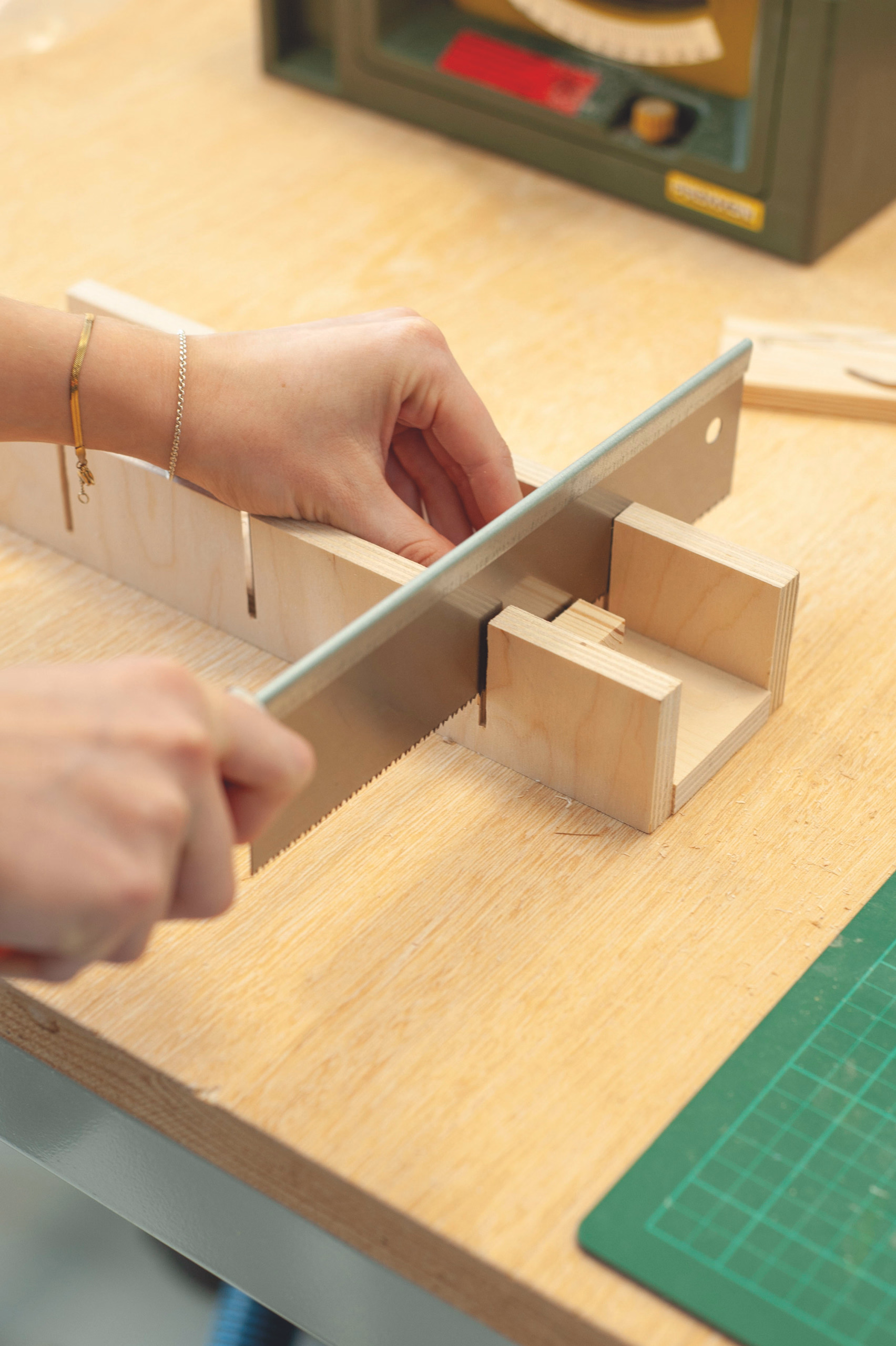 Voorkomende werkzaamheden: zagen, vijlen en lijmen.