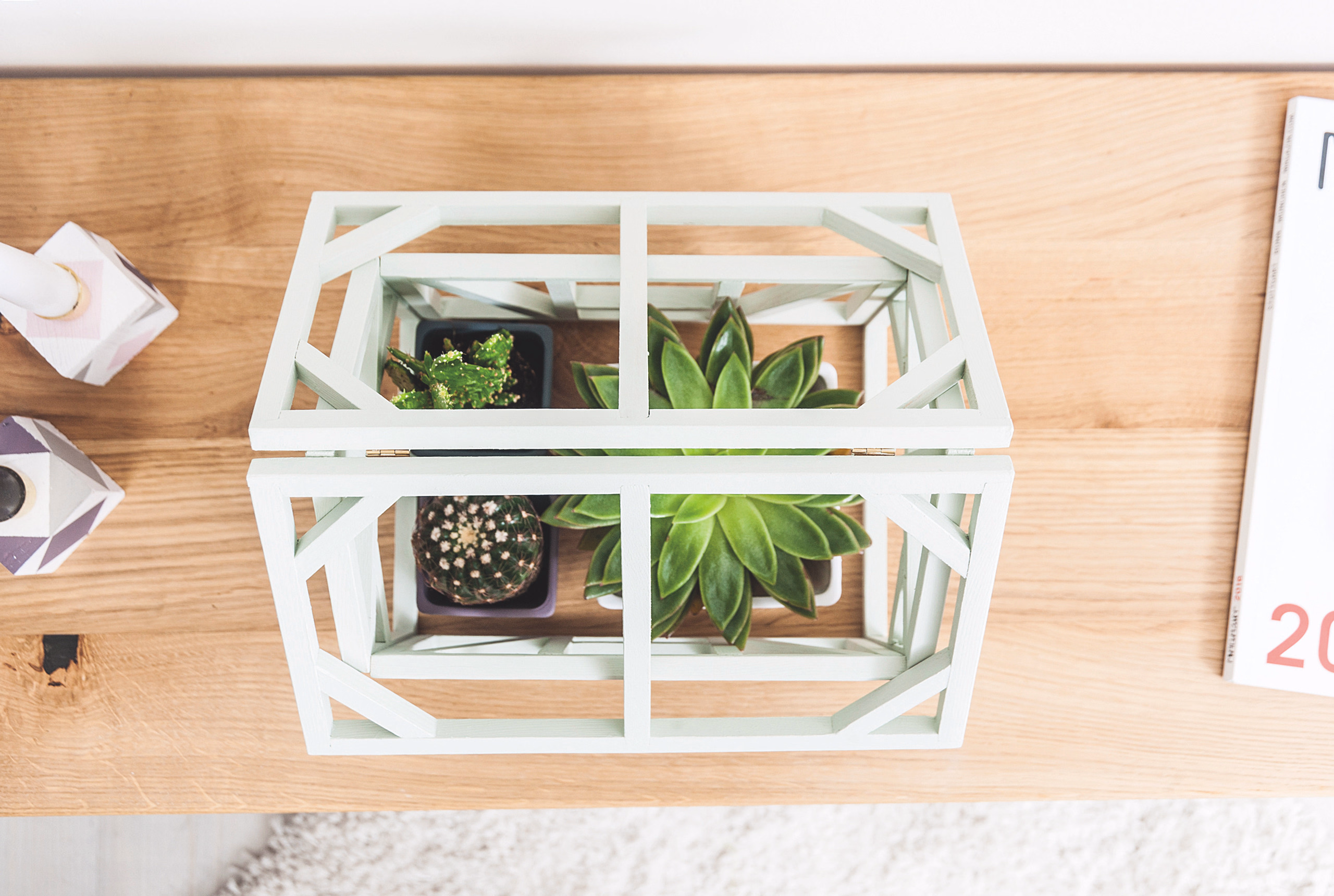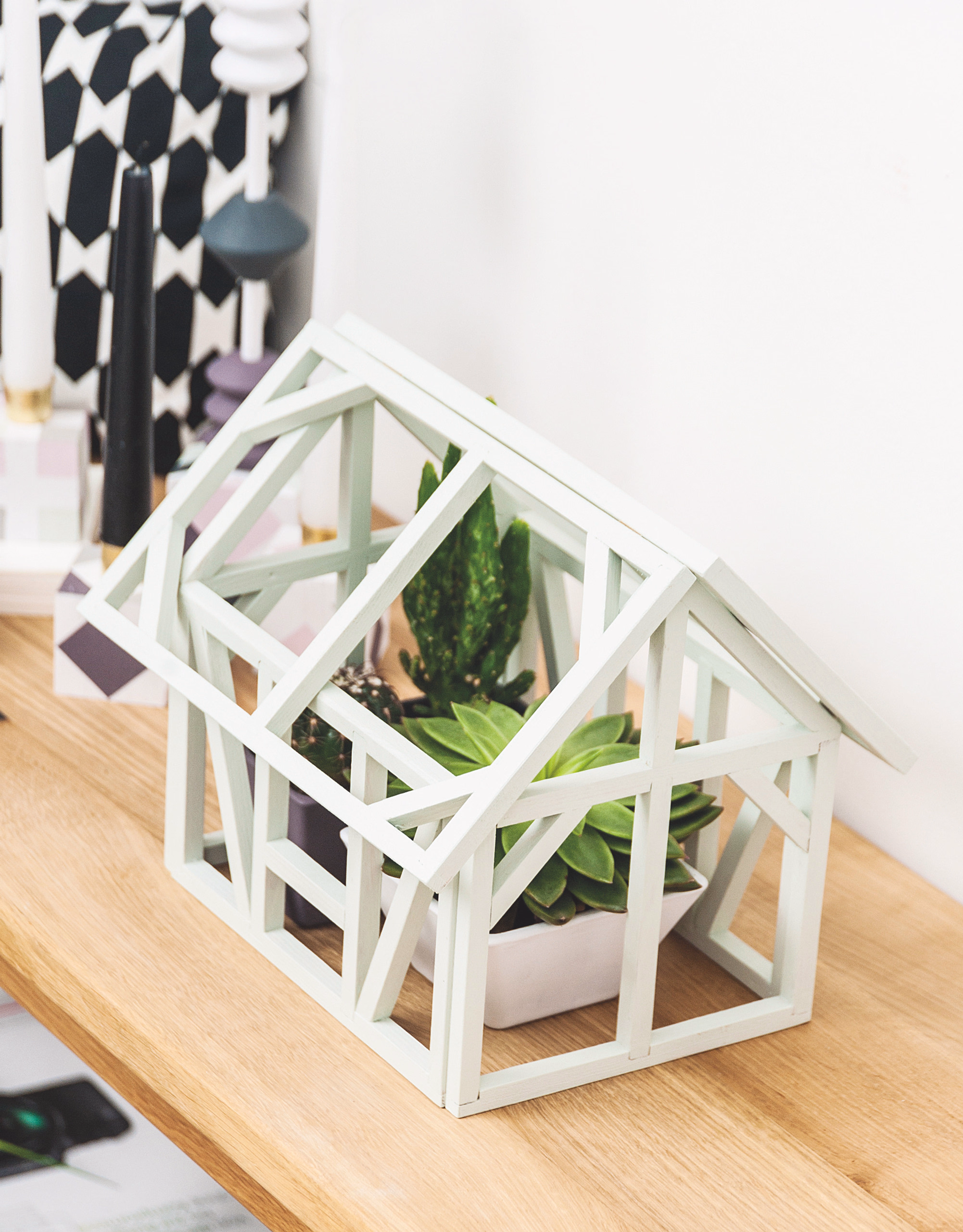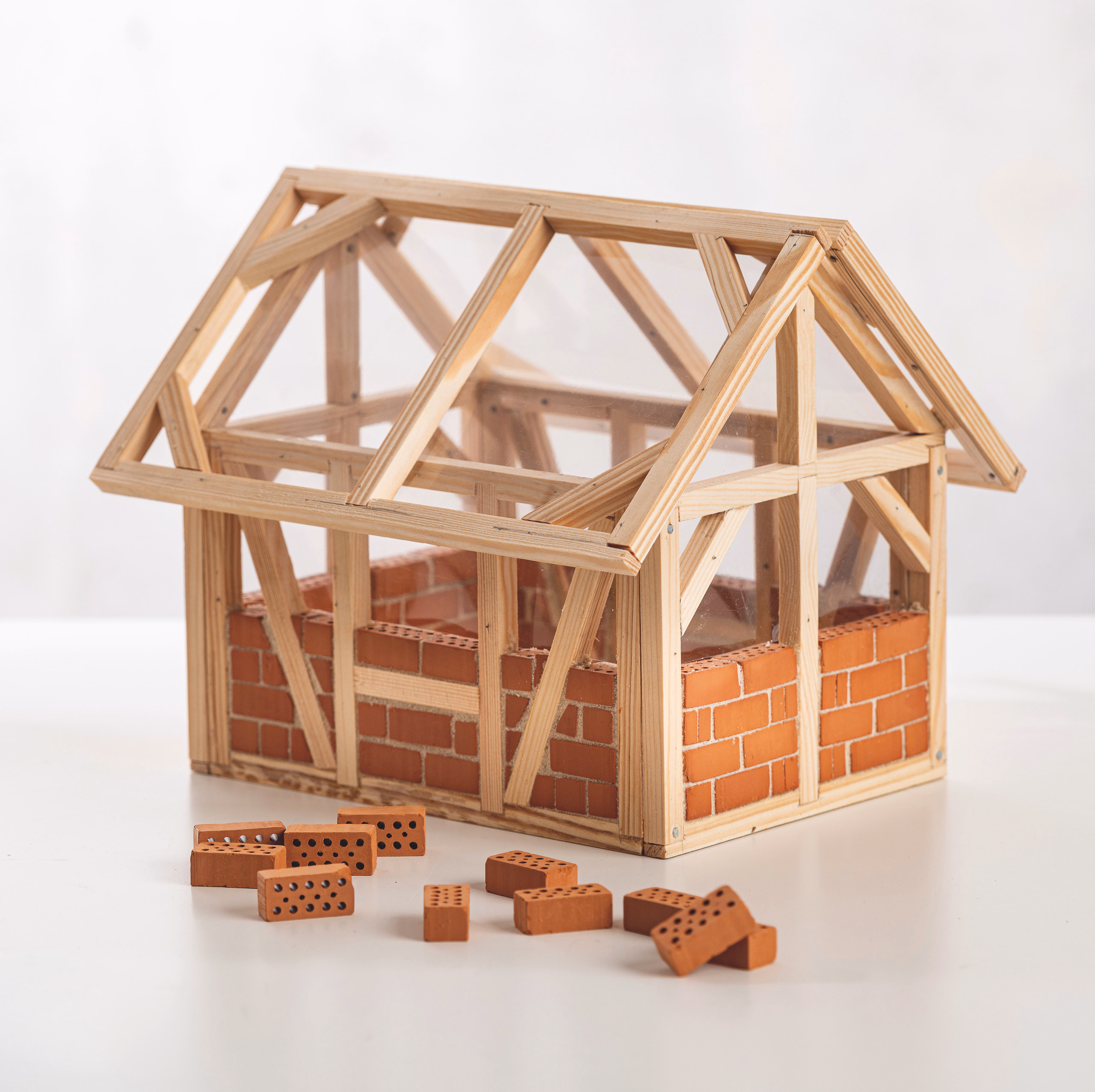 Het frame van deze vakwerkconstructie wordt met 10 x 10 mm grenen latten gemaakt en bestaat uit 2 zijkanten, 2 gevels en 2 dakvlakken. De beglazing is van kunststof folie.