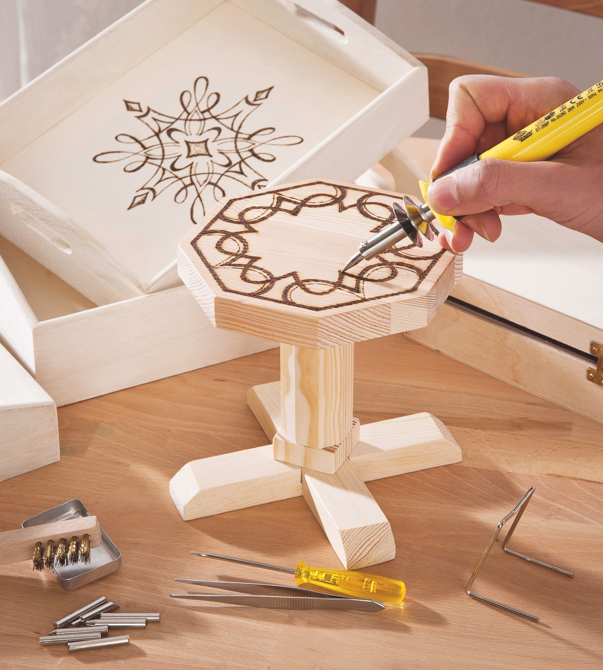 | Vereist werk met: | Boor, Hamer, Lijm, Liniaal/Winkelhaak, Schroefklem, Vijl, Zaag, potlood |