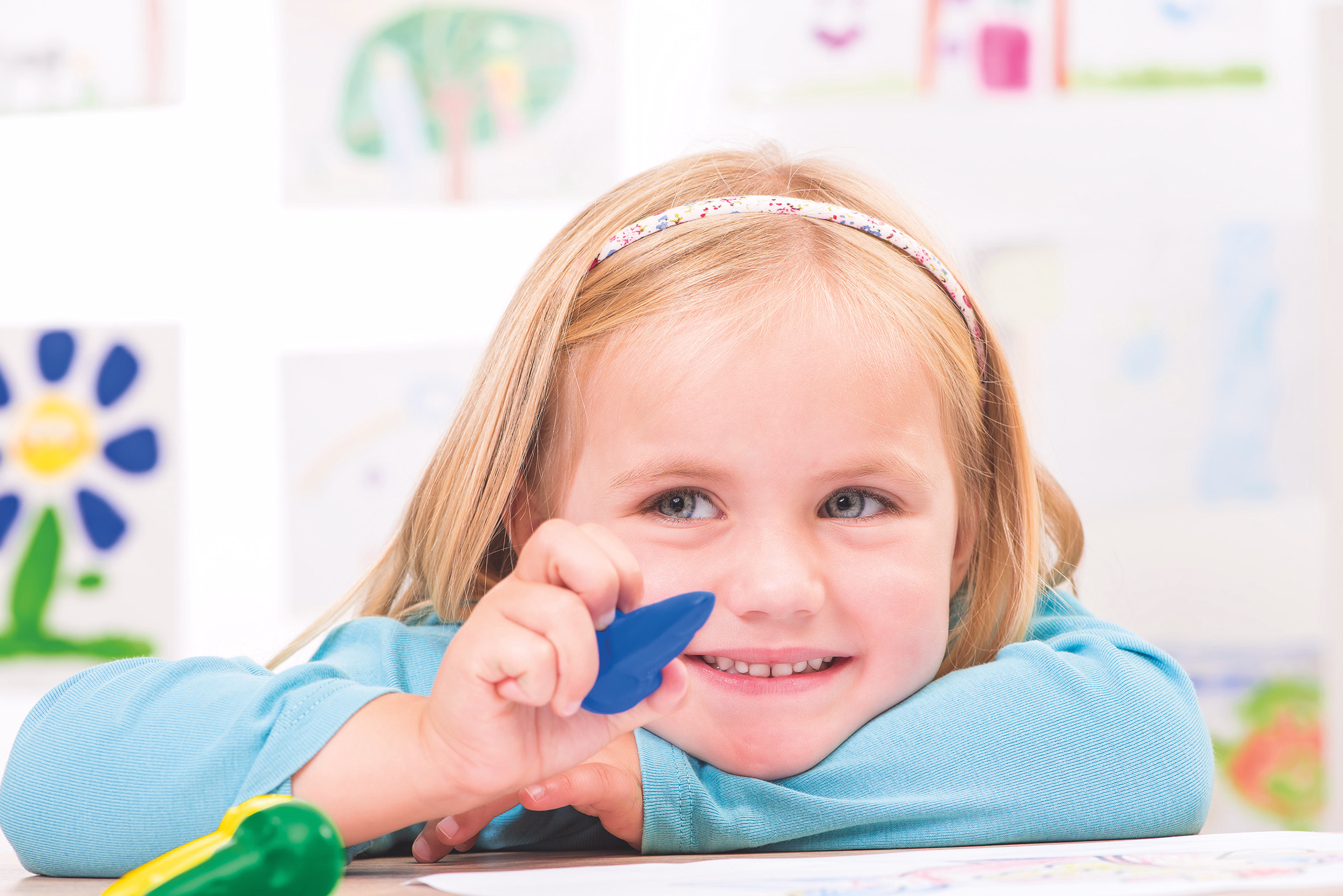 6 robuuste en ergonomische waskrijtjes, in de kleuren geel, oranje, rood, paars, blauw en groen, afmeting: ca. ø 30 x 65 mm, 6 stuks