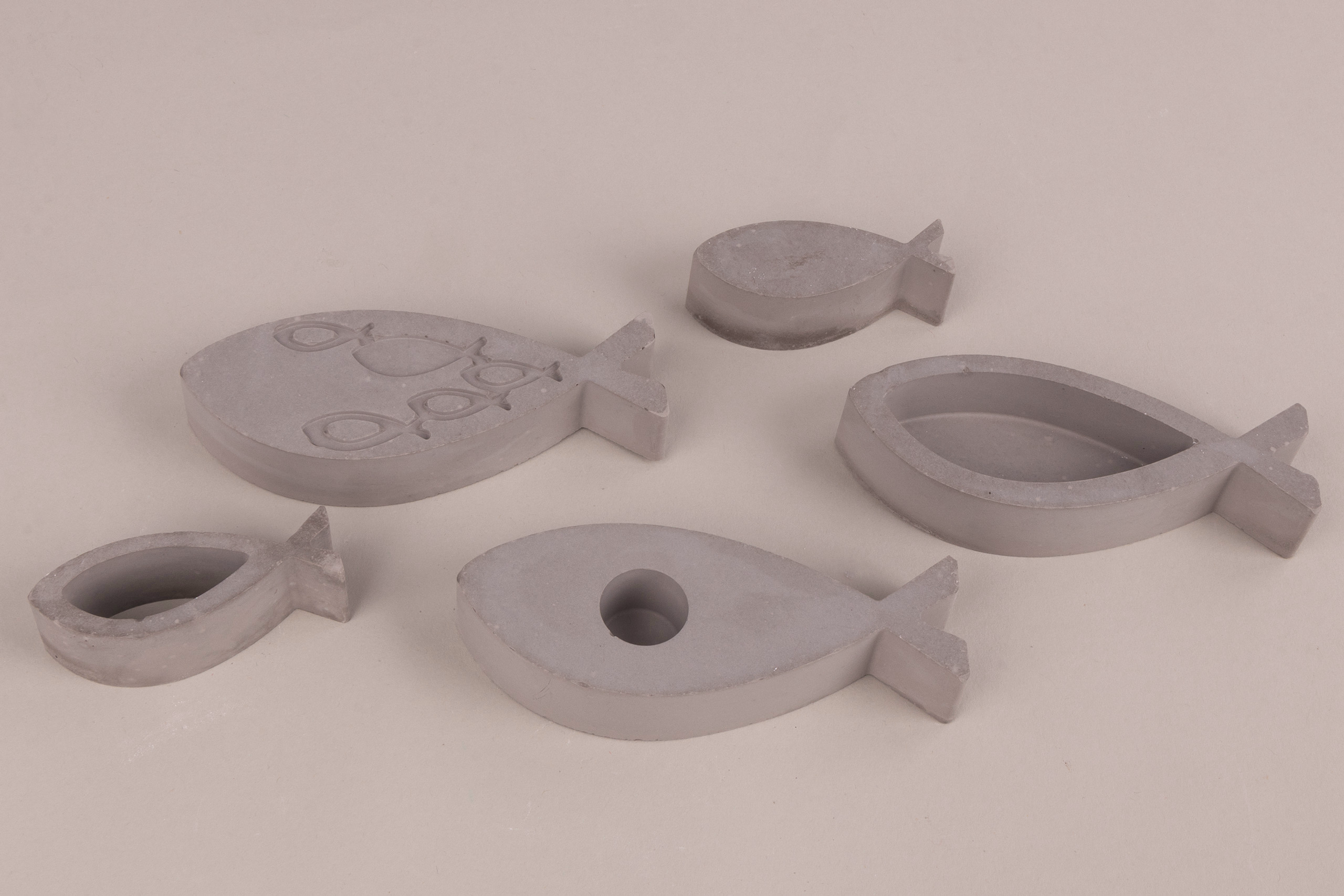 1 vorm ca. 145 x 260 mm, 5 motieven, grootte ca. 26 - 46 mm, ca. 25 mm hoog, benodigd materiaal: ca. 450 g creatief beton, ca. 270 g sieraad beton, ca. 370 g Raysin, ca. 270 g gietpoeder, ca. 230 g Resin, ca. 250 g gietzeep, grijze vorm, per stuk